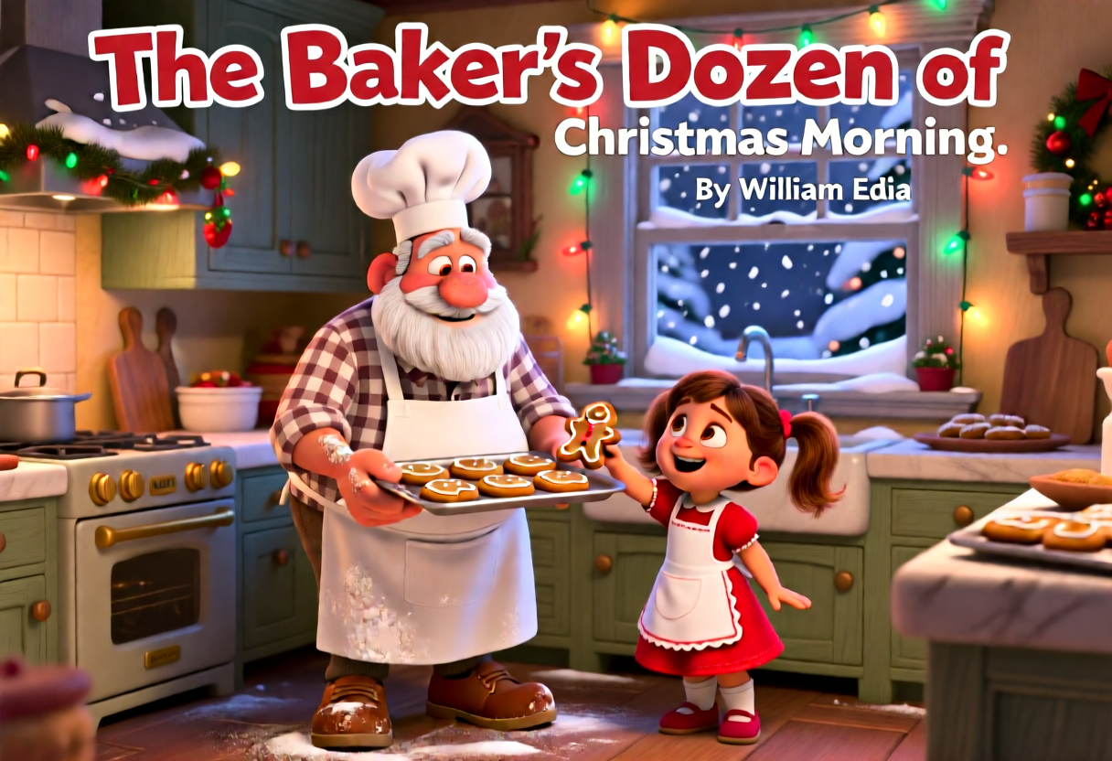 When Lily helps her Grandpa bake a “baker’s dozen” of gingerbread cookies for Santa, she learns that the best gifts aren’t just the ones wrapped under the tree—they’re made with love, sprinkled with laughter, and shared with someone you cherish. From rolling out the dough to decorating the thirteenth special cookie for Santa’s lead reindeer, every moment is filled with warmth, wonder, and the spicy scent of holiday memories.